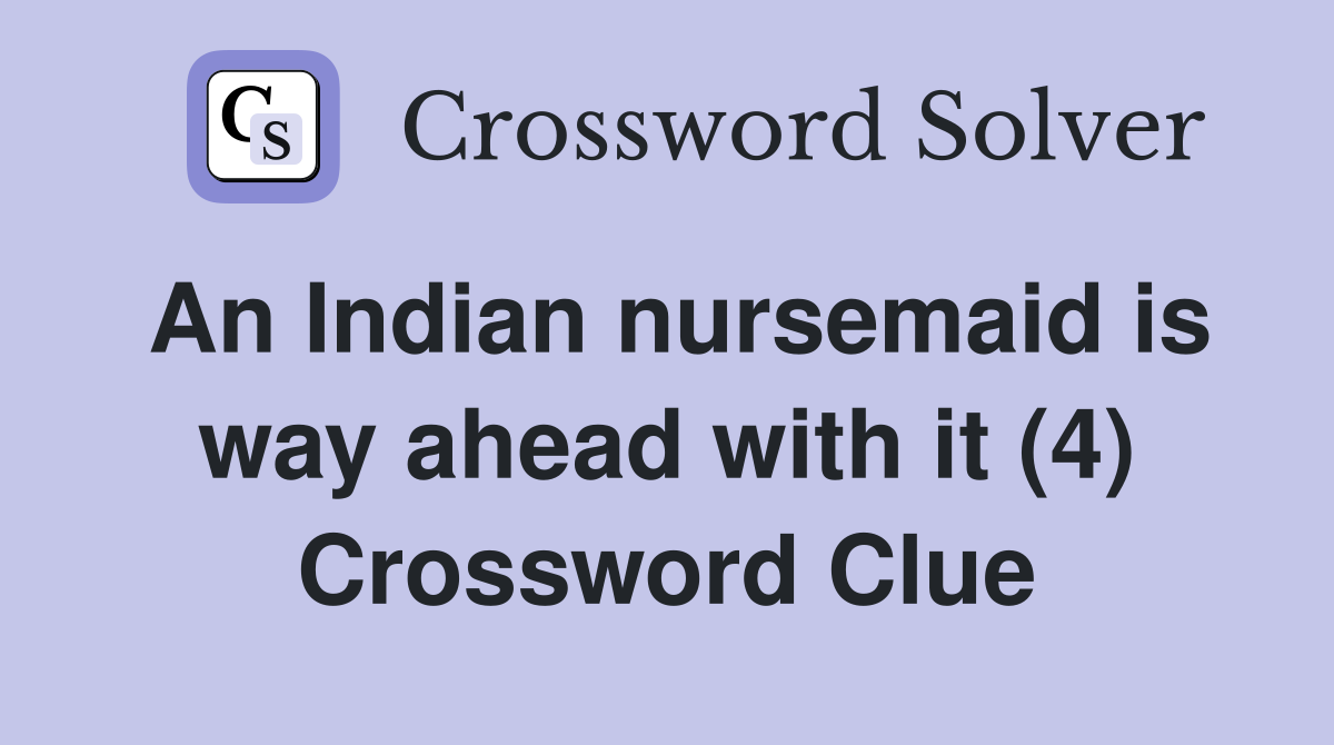 An Indian nursemaid is way ahead with it (4) Crossword Clue Answers
