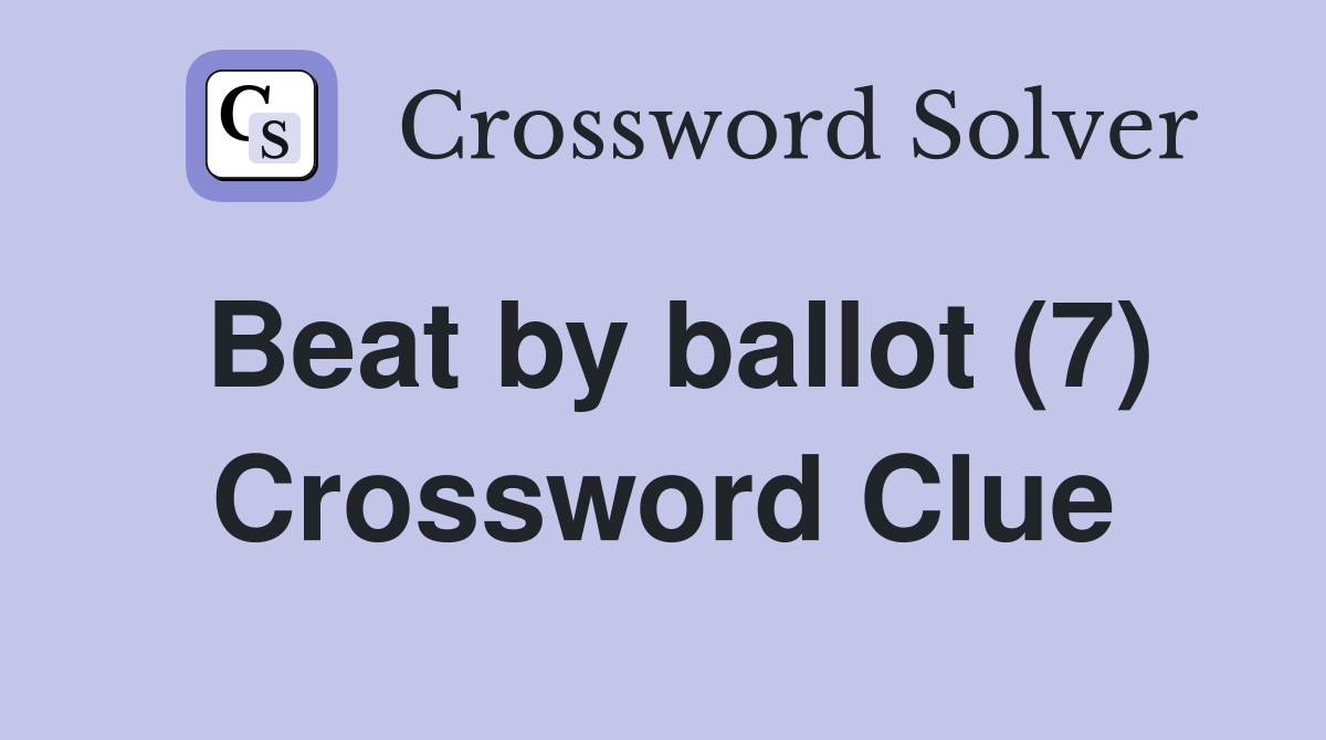 Beat by ballot (7) Crossword Clue Answers Crossword Solver