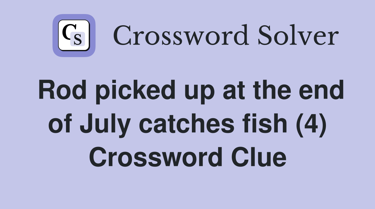 Rod picked up at the end of July catches fish (4) Crossword Clue