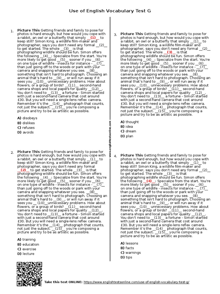 183 Use of English Vocabulary Test G PDF Camera Photograph