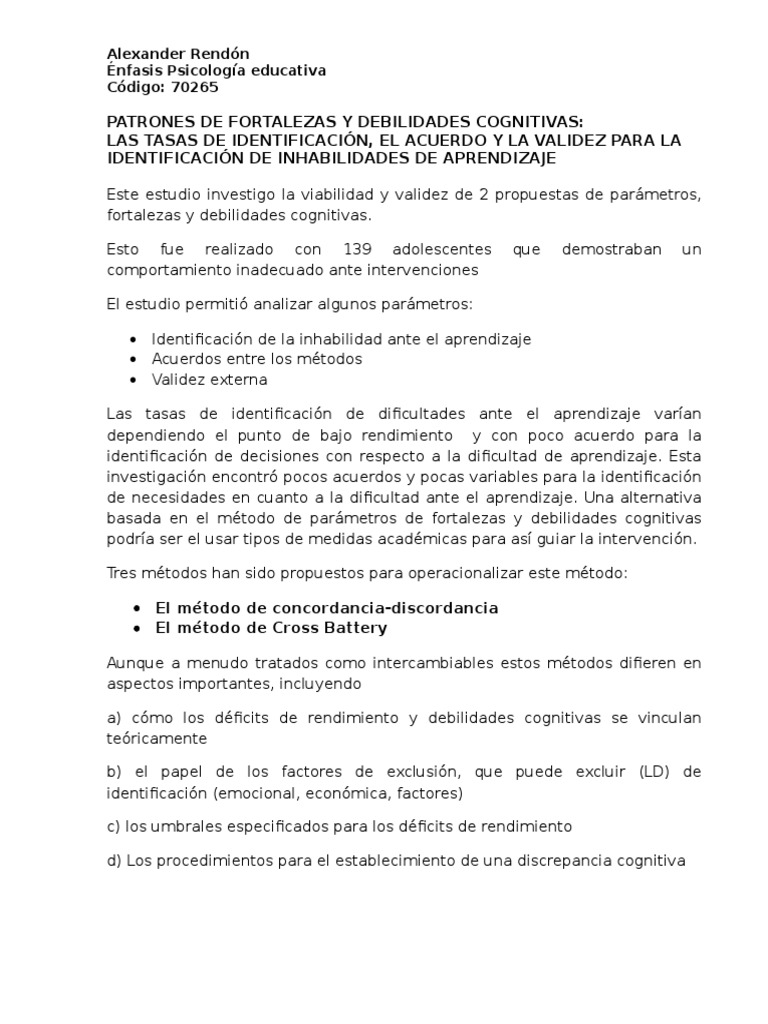 Patrones de Fortalezas y Debilidades Cognitivas PDF Validez