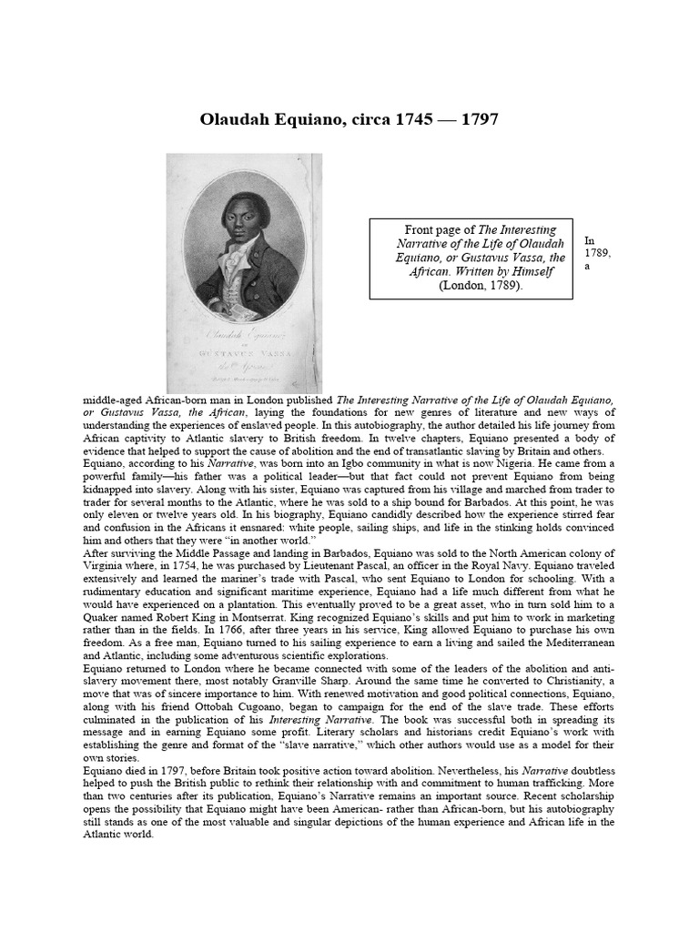 Originally published in 1789, olaudah equiano’s the interesting narrative of the life of olaudah equiano, or gustavus vassa, the african. The interesting narrative of the life of olaudah equiano study guide contains a biography of olaudah equiano, literature essays, quiz.