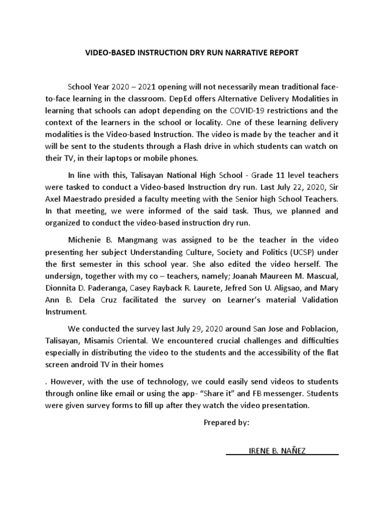 Example Of A Narrative Report