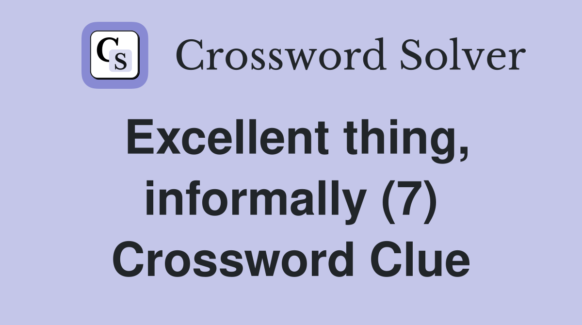 Excellent thing, informally (7) Crossword Clue Answers Crossword Solver