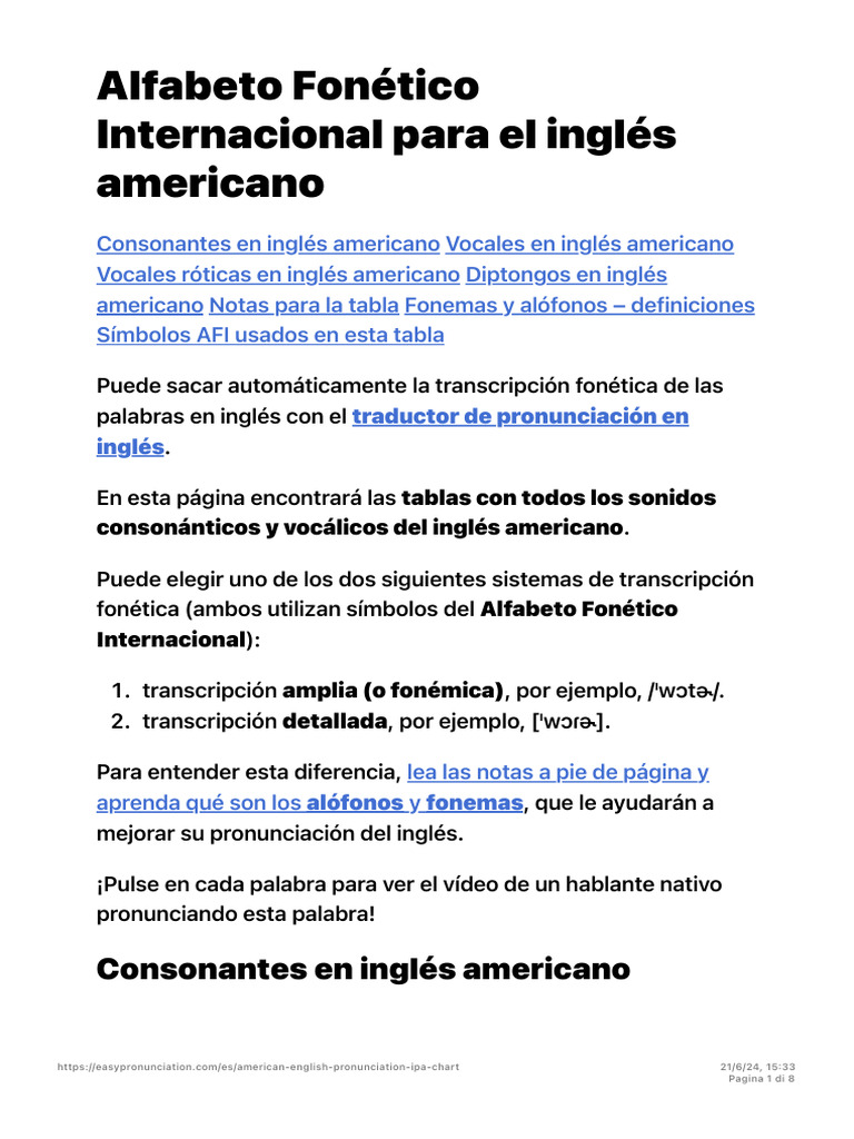 Alfabeto Fonético Internacional para el inglés americano PDF Fonema