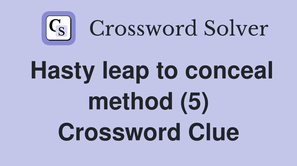Hasty leap to conceal method (5) Crossword Clue Answers Crossword