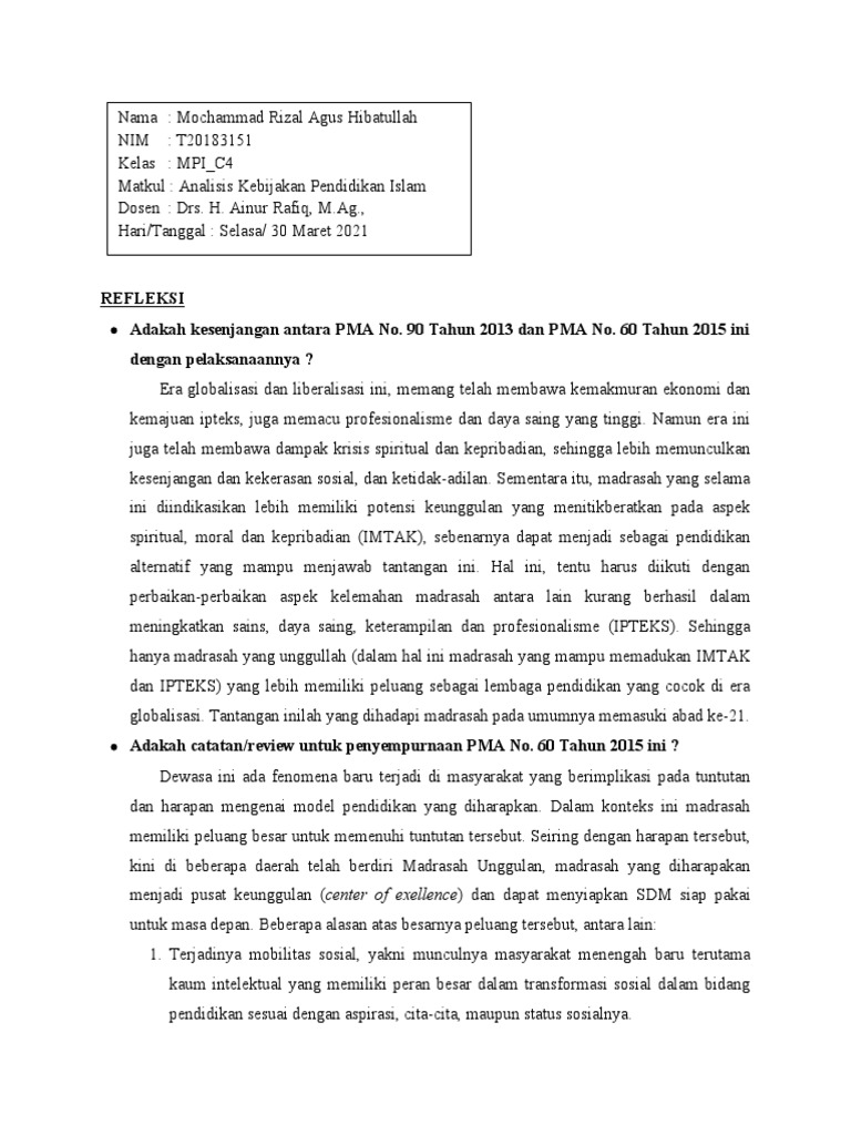 Mochammad Rizal Agus Hibatullah T20183151 (Refleksi30 Maret 2021) PDF