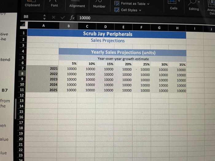 Solved Sales Projection (Picture 1) *how to set the