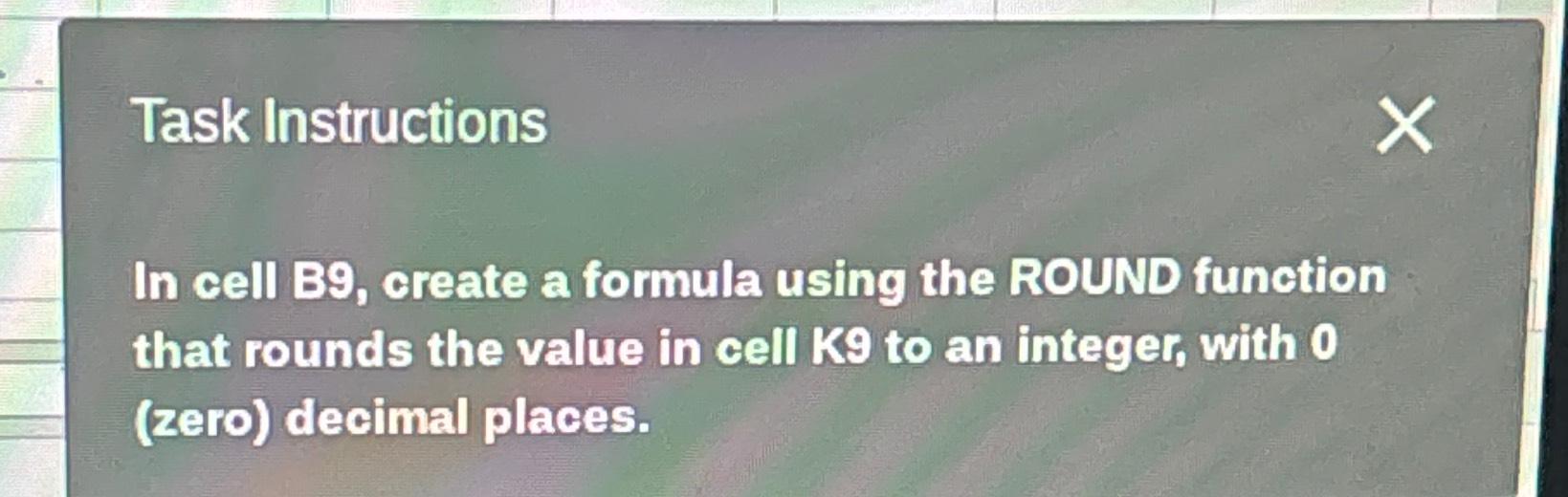 In cell b9, create a formula using the round function that rounds the value in cell k9 to an integer, with 0 (zero) decimal places. The round function rounds a number to a specified number of digits. To always round up (away from zero), use the roundup function. To always round down (toward zero), use the rounddown function. You can.