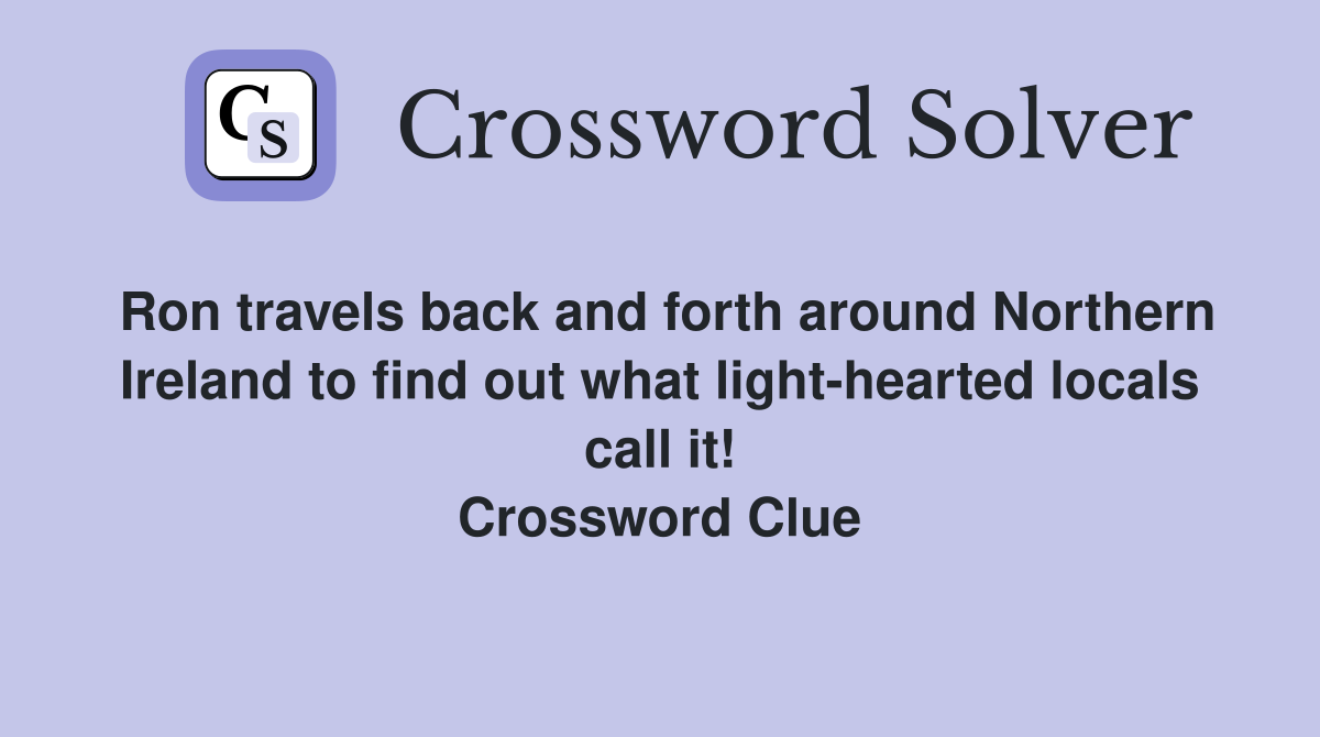 This page contains answers to puzzle ireland, to locals. If you're looking for help with the ireland, to the locals clue in daily themed crossword, we have the answer to assist you with. We have found the following solution matching the query ireland to locals in our database. Ireland to locals daily themed crossword. We will try to find the.