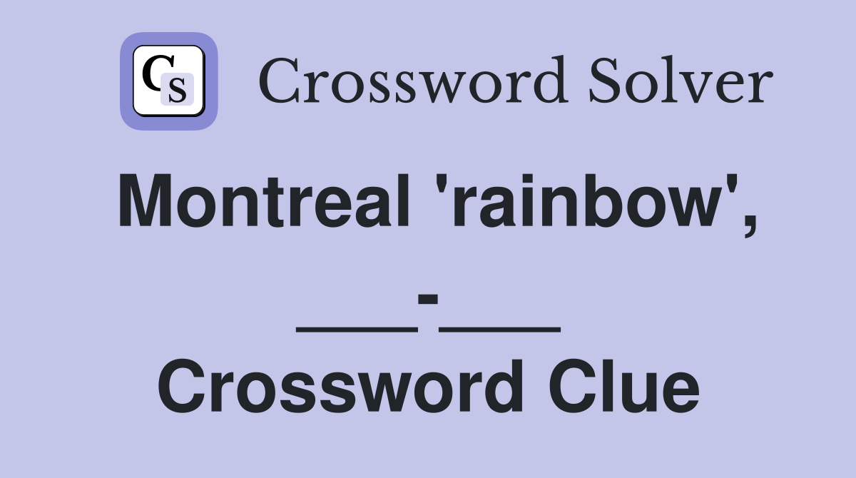 Montreal 'rainbow', ______ Crossword Clue Answers Crossword Solver