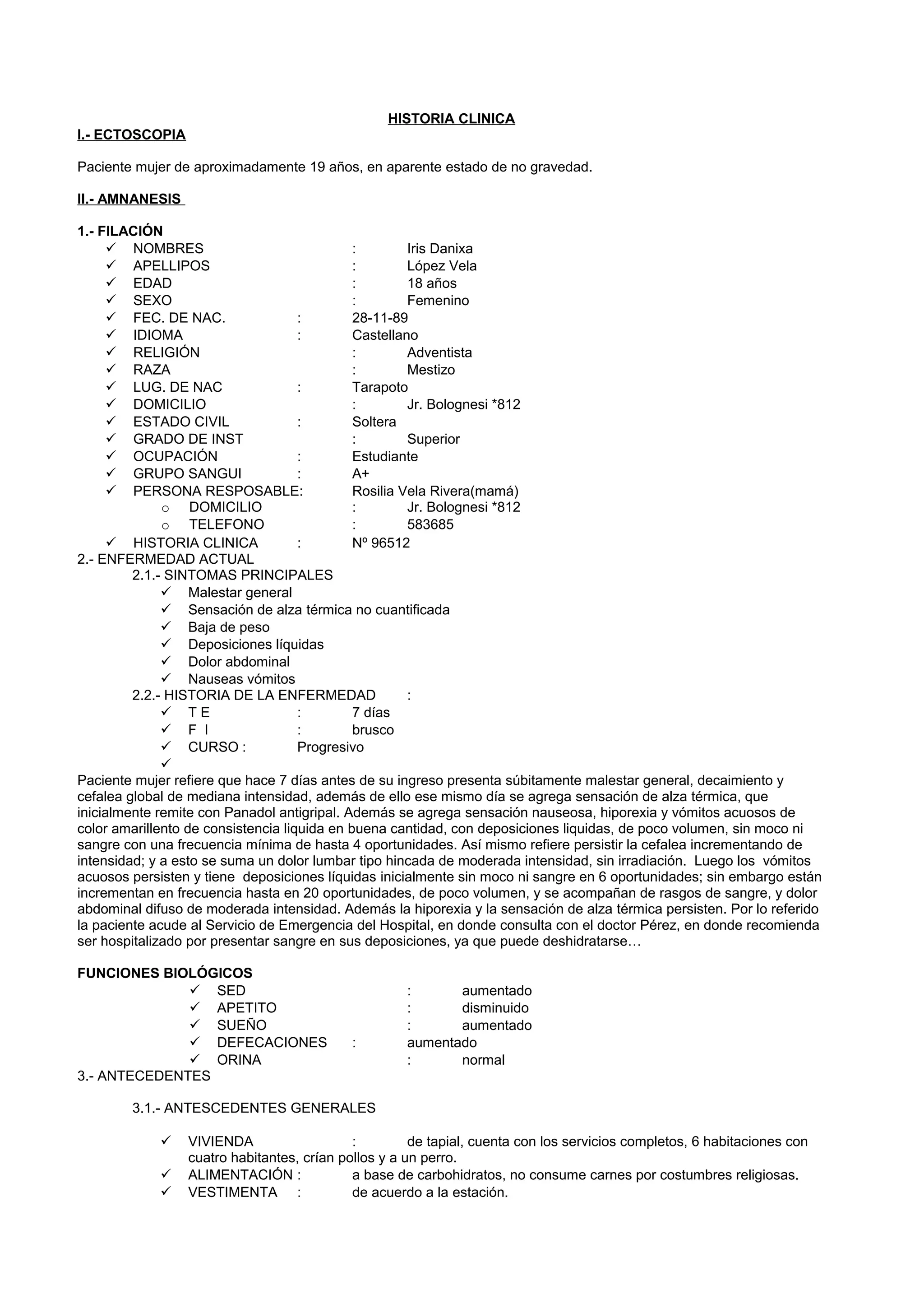 Historia ClinicaHasta revision por sistemas 1. DATOS ESTADISTICOS