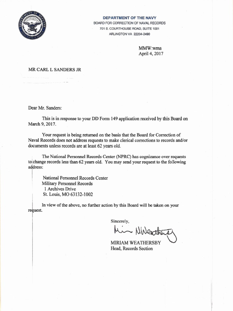 DD Form 149 Military Discharge Defense Policy