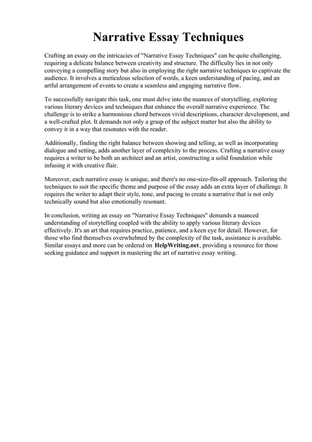 Narrative Essay Techniques. Narrative essay Narrative essay intro