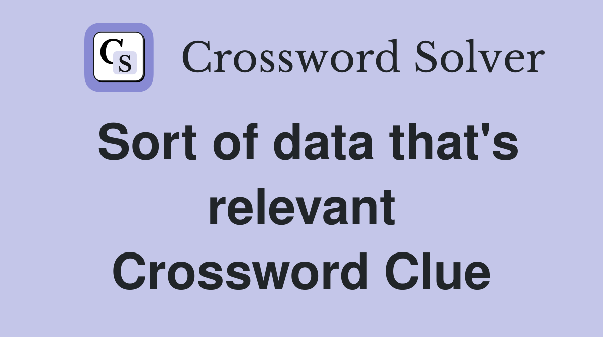 Sort of data that's relevant Crossword Clue Answers Crossword Solver
