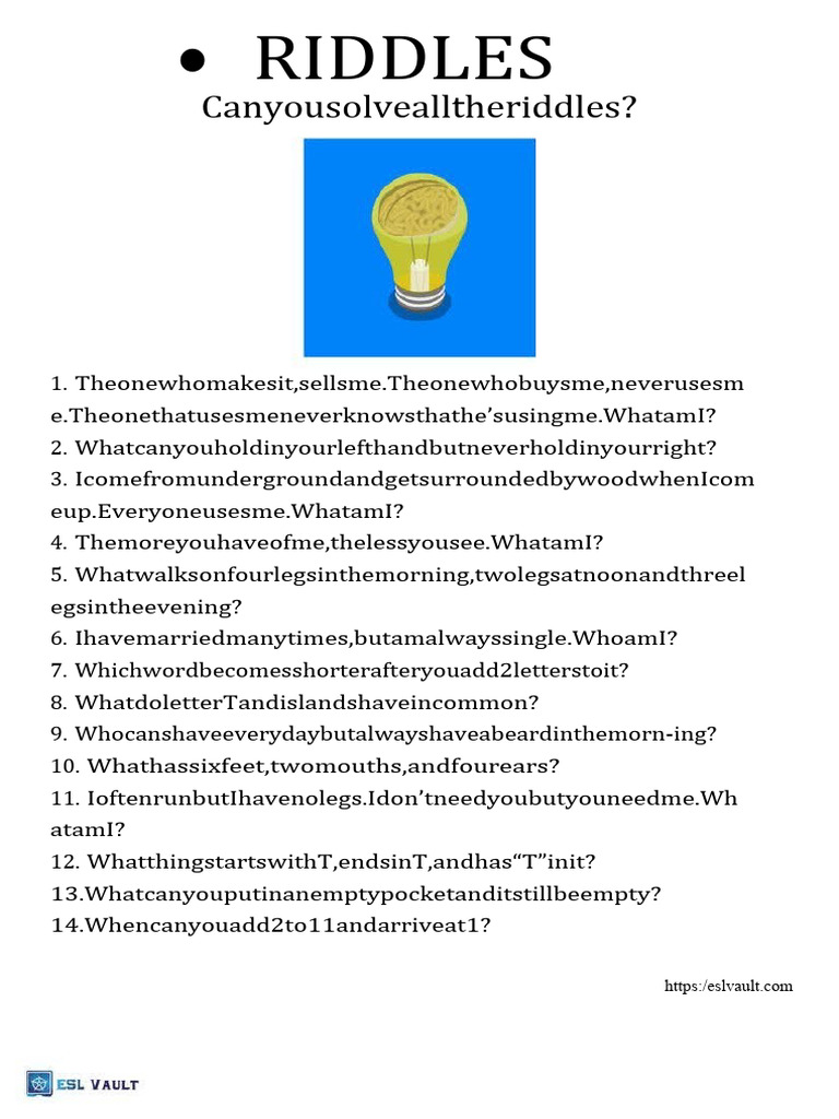 Free printable riddles with answers worksheets ESL Vault Riddles