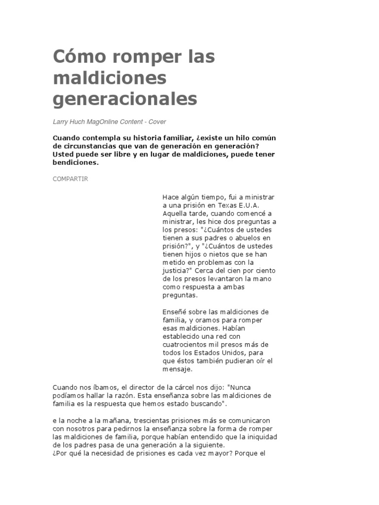 Cómo Romper Las Maldiciones Generacionales PDF Pecado La unción