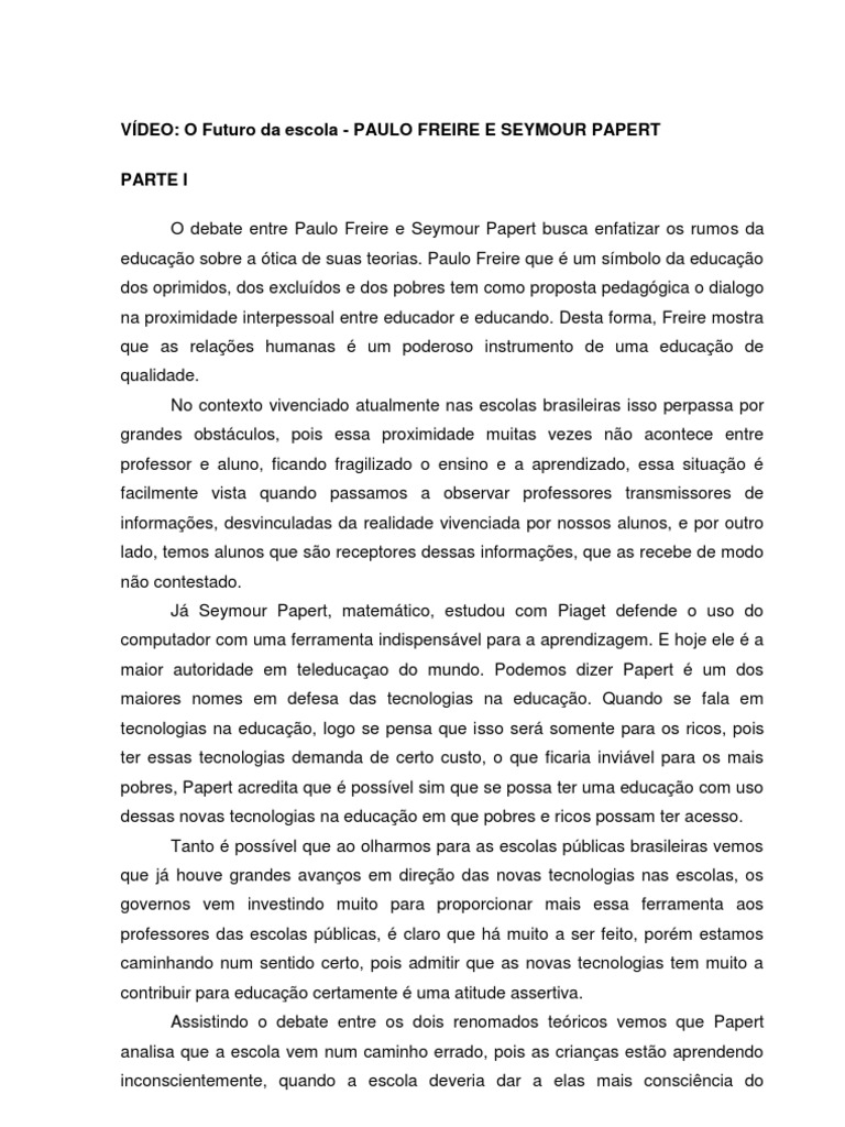 O Futuro da escola(Vídeo) PAULO FREIRE E SEYMOUR PAPERT _ Parte I