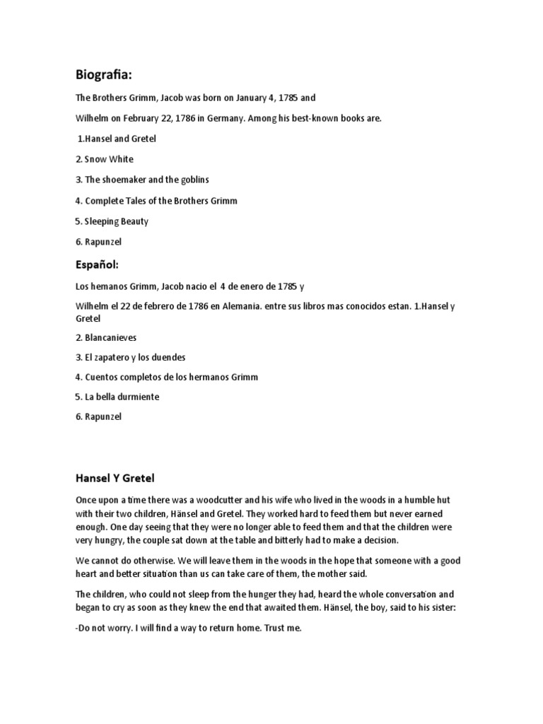Brothers Grimm Fairy Tale Summary Hansel and Gretel PDF Hansel And