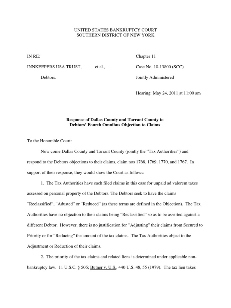 Response of Dallas County and Tarrant County To Debtors' Fourth Omnibus