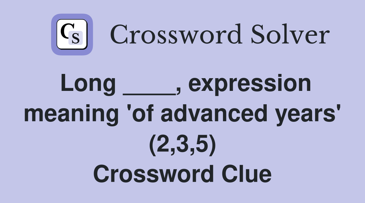 Long ____, expression meaning 'of advanced years' (2,3,5) Crossword