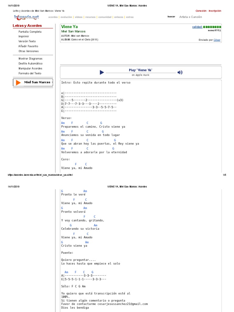 VIENE YA, Miel San Marcos Acordes