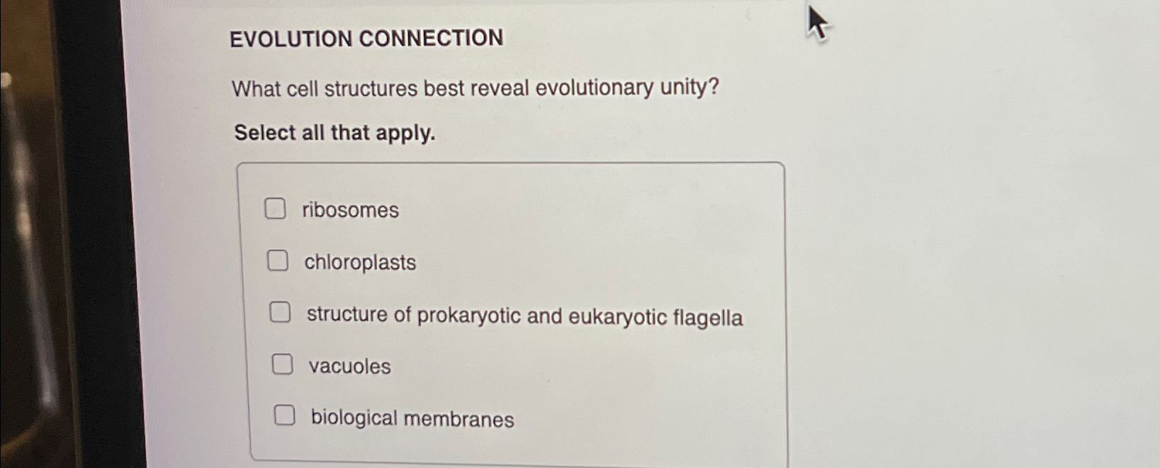 Solved EVOLUTION CONNECTIONWhat cell structures best reveal