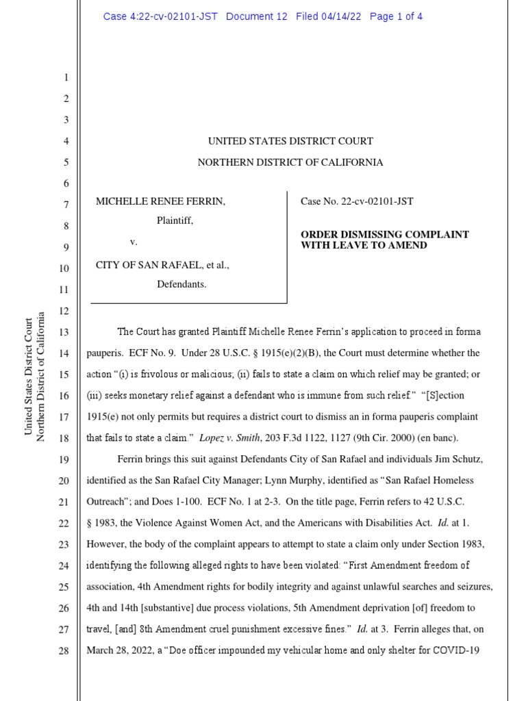 Impounded Vehicular Dismissal With Leave To Amend PDF