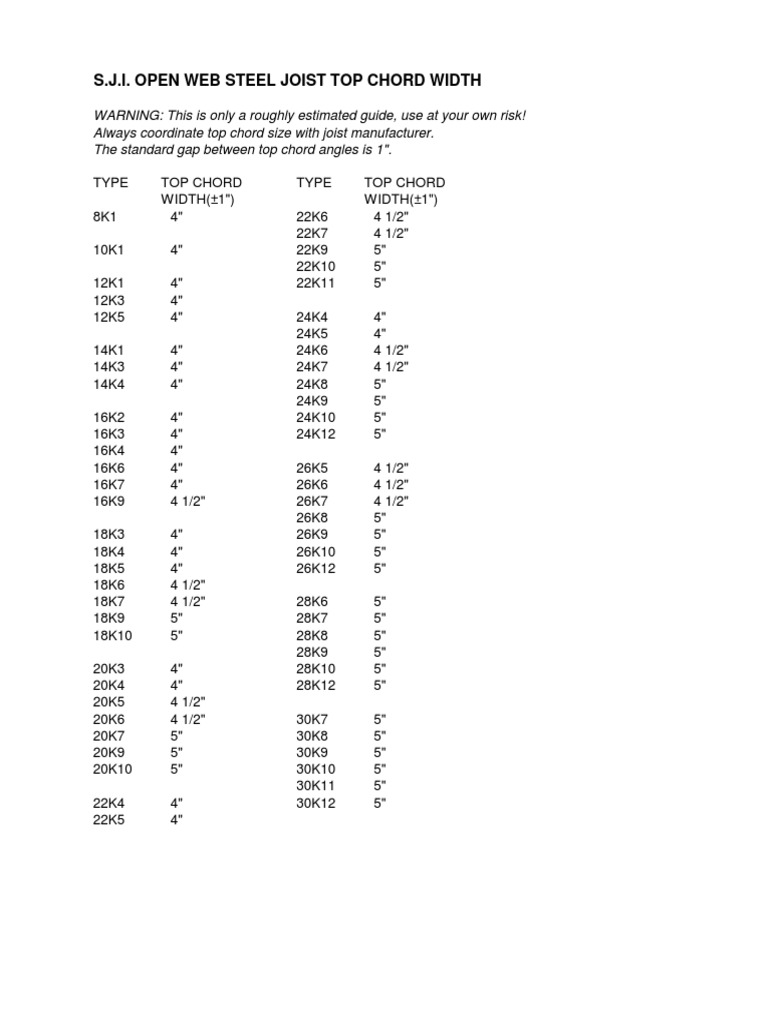 Joist Top Chord Width PDF