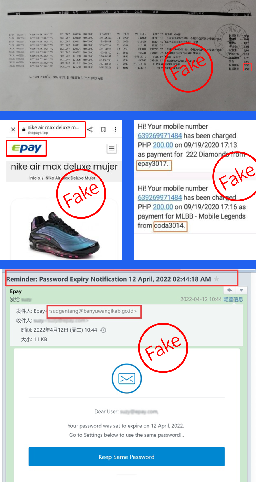 Risk Reminder and the Statement about Abusing the Name of Epay to