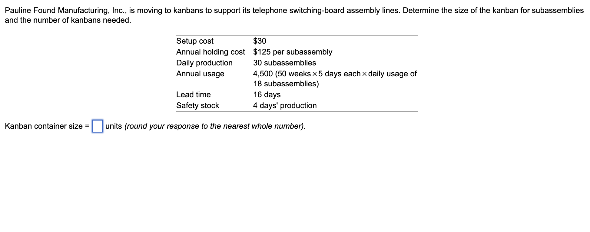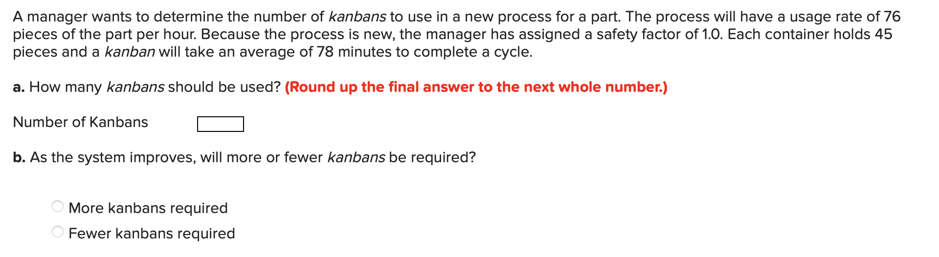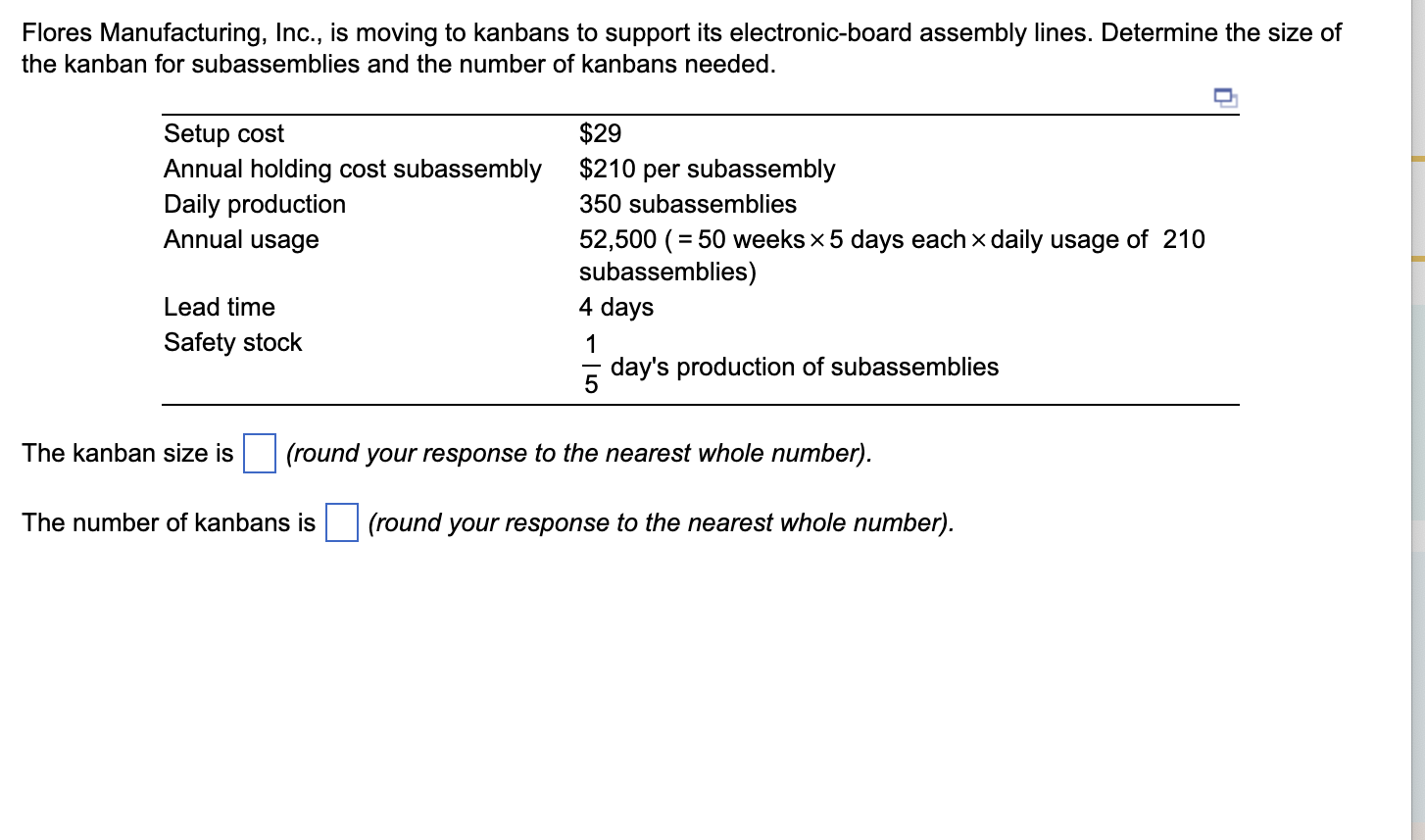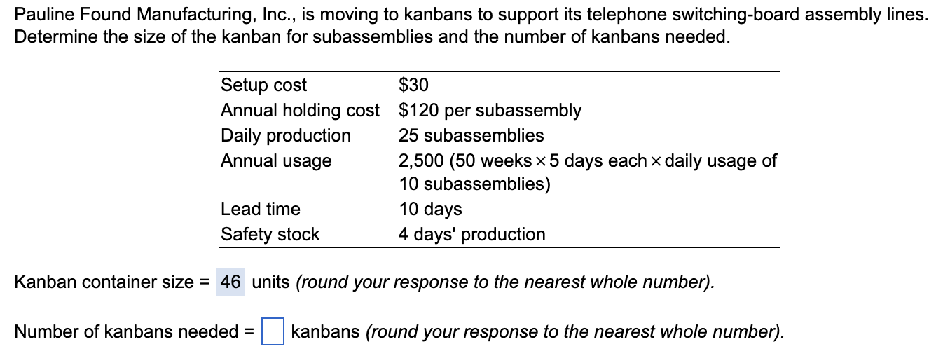 Solved A manager wants to determine the number of kanbans to