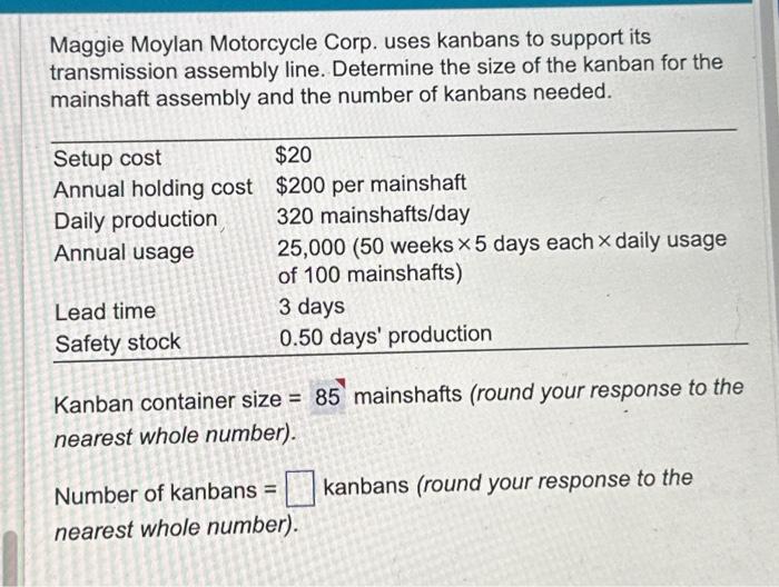 Solved Maggie Moylan Motorcycle Corp. uses kanbans to