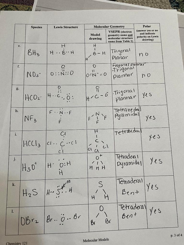 Solved Species Lewis Structure Molecular Geometry VSEPR