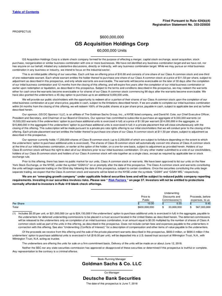GS Acquisition Holdings Corp PDF Goldman Sachs Securities (Finance)