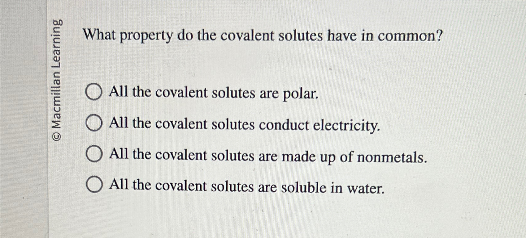 Solved What property do the covalent solutes have in