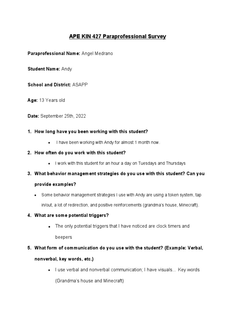 Kin 427 Interview 1 Paraprofessional Angel PDF